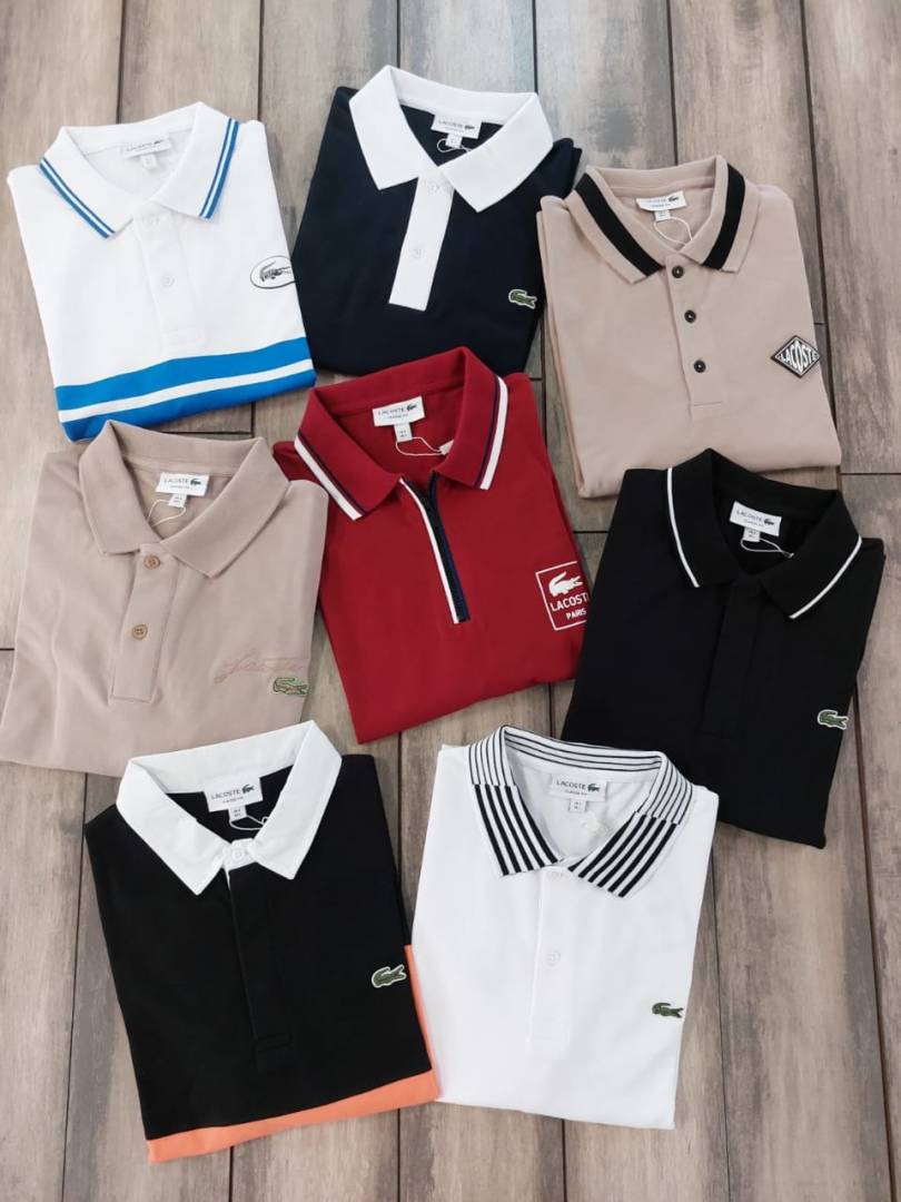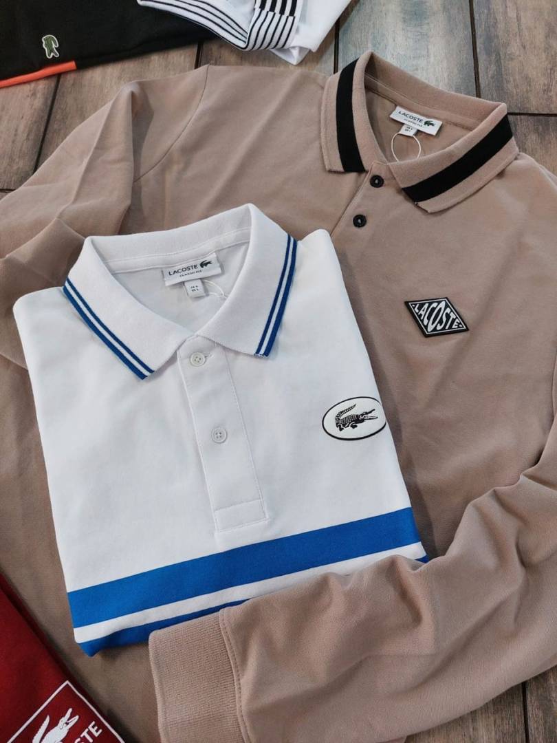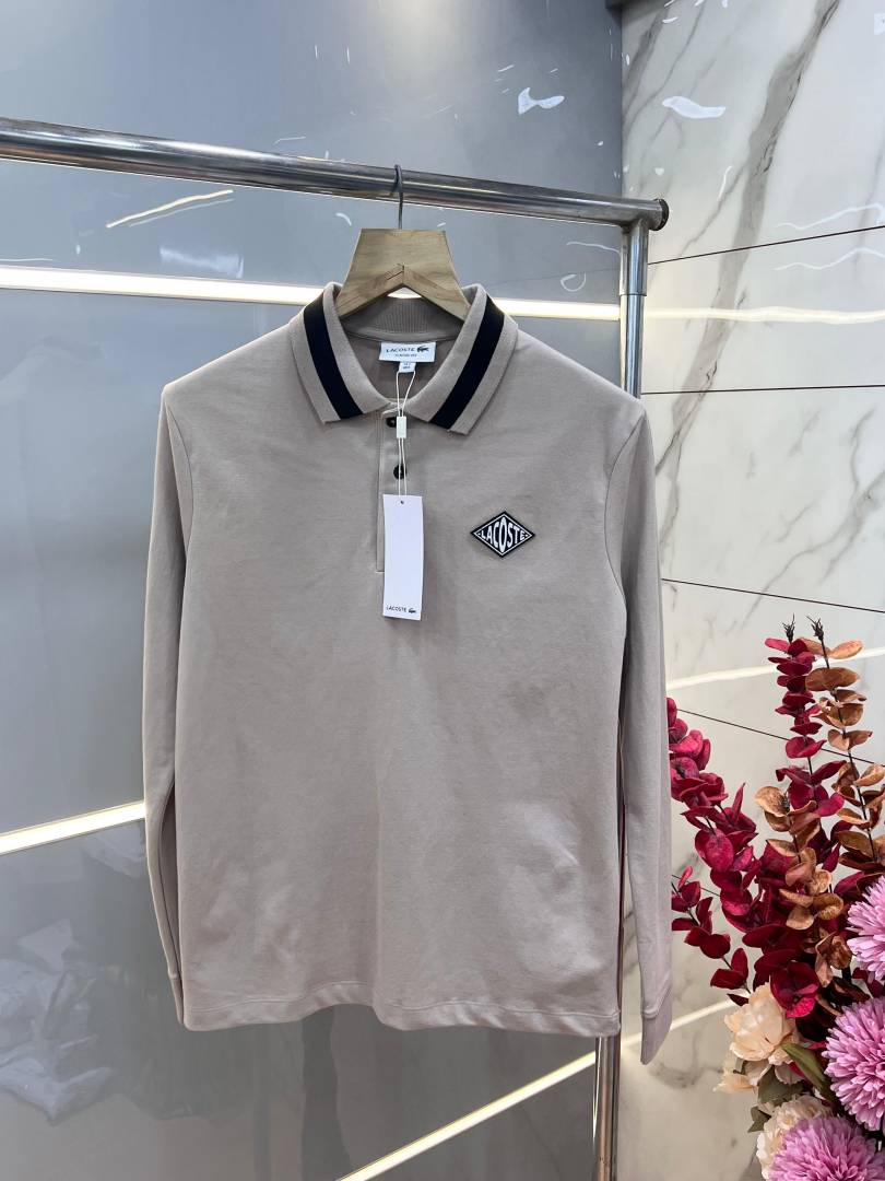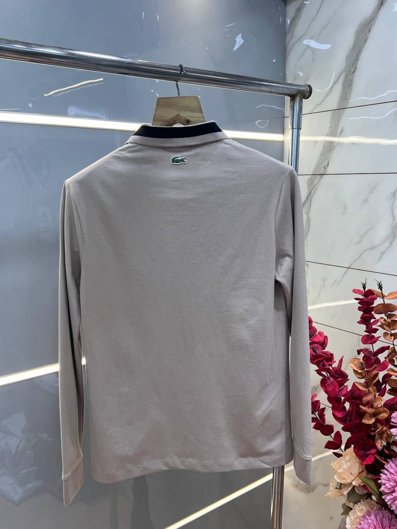 Lacost e Beige Premium Cotton Lycra Pique fabric Polo Full Sleeves Tshirt with Collar Design and Patch Logo 3292