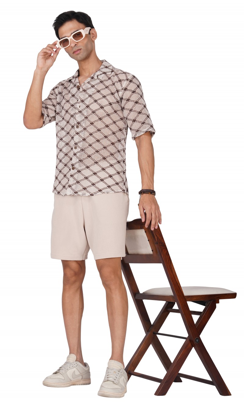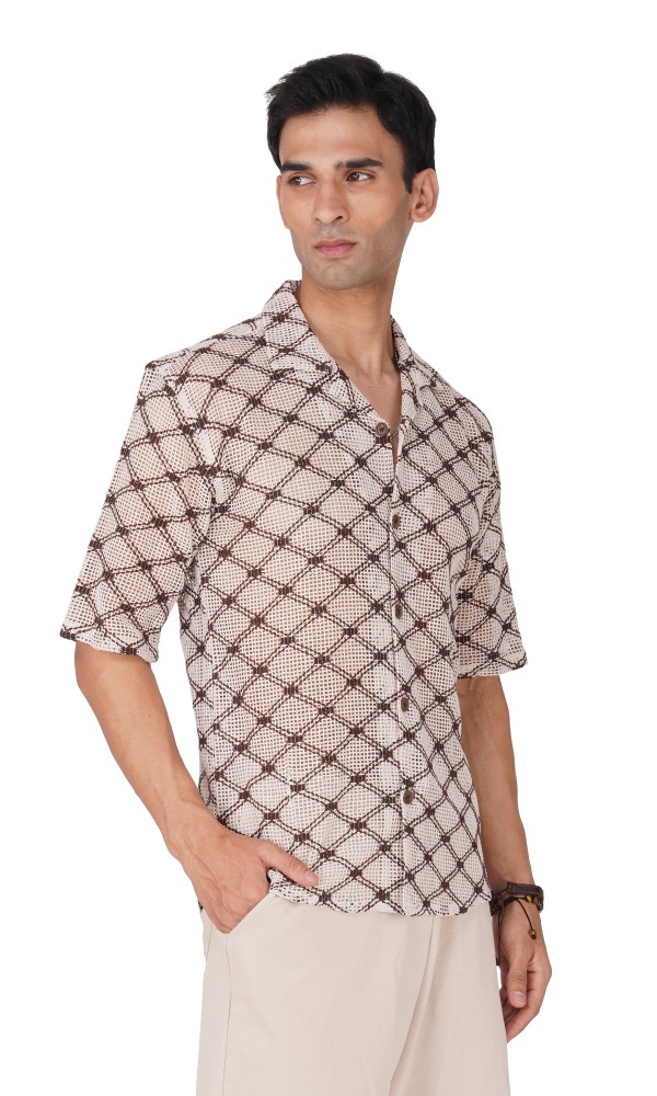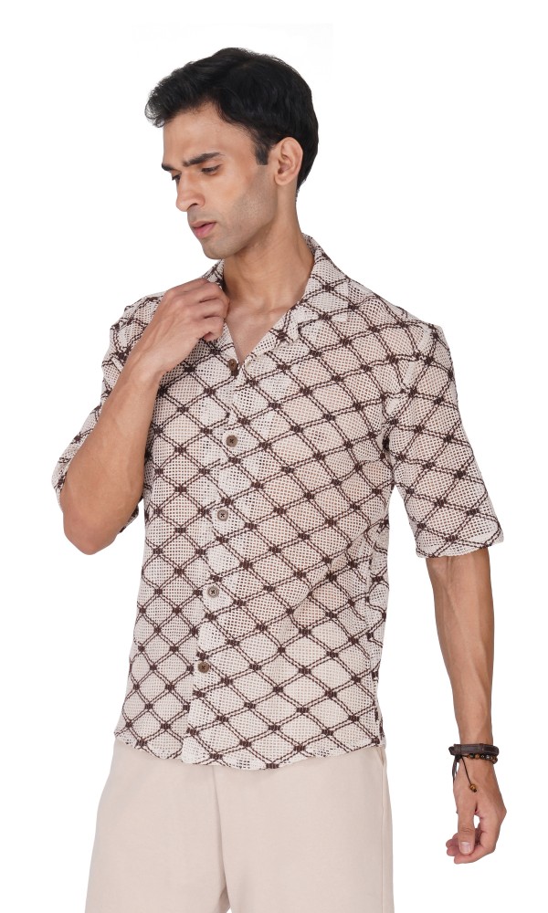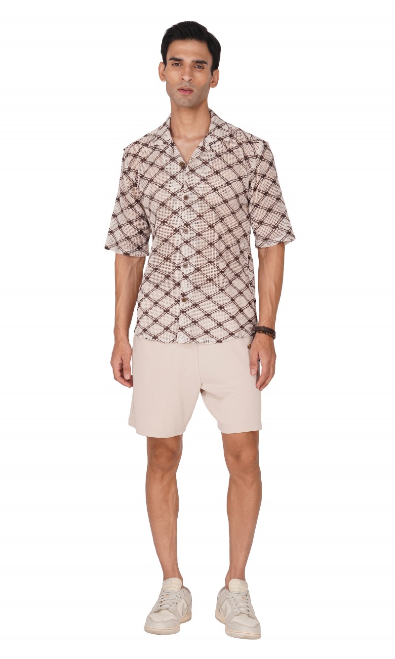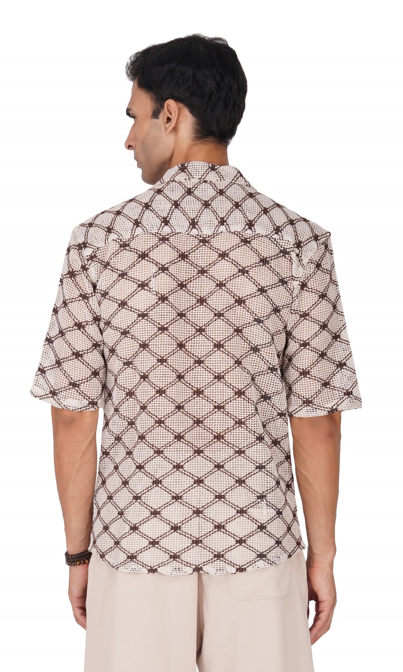 Experience life in extreme style with this stunning BROWN AND WHITE HALF SLEEVE CAMP COLLAR CROCHET SHIRT! Perfect for a beach day, this eye-catching shirt is sure to turn heads. Lightweight and airy, it's the ideal way to embrace the sun, sand, and salt without sacrificing comfort. Dare to be different and express your individual style!