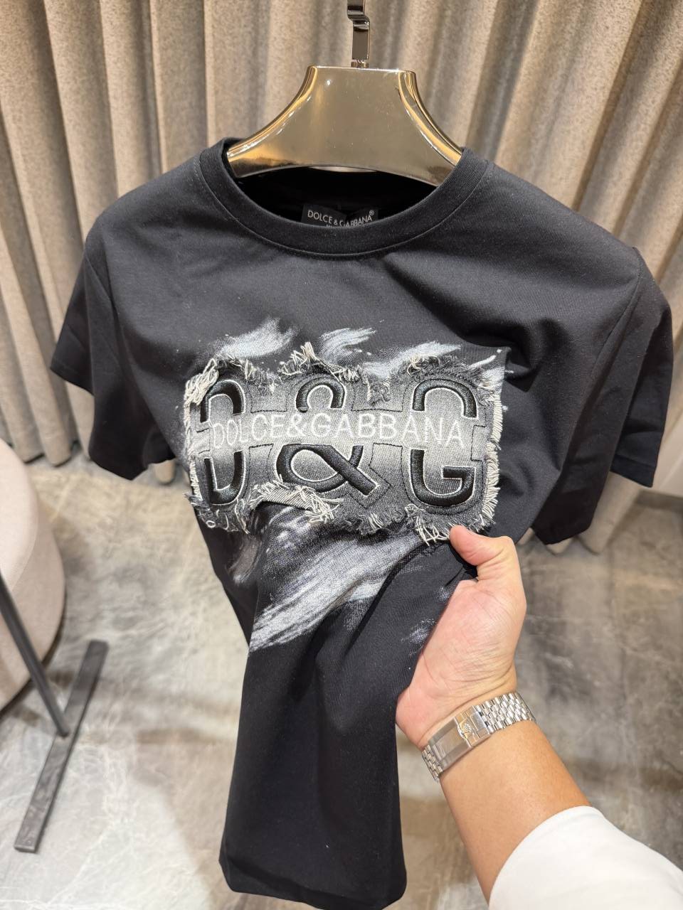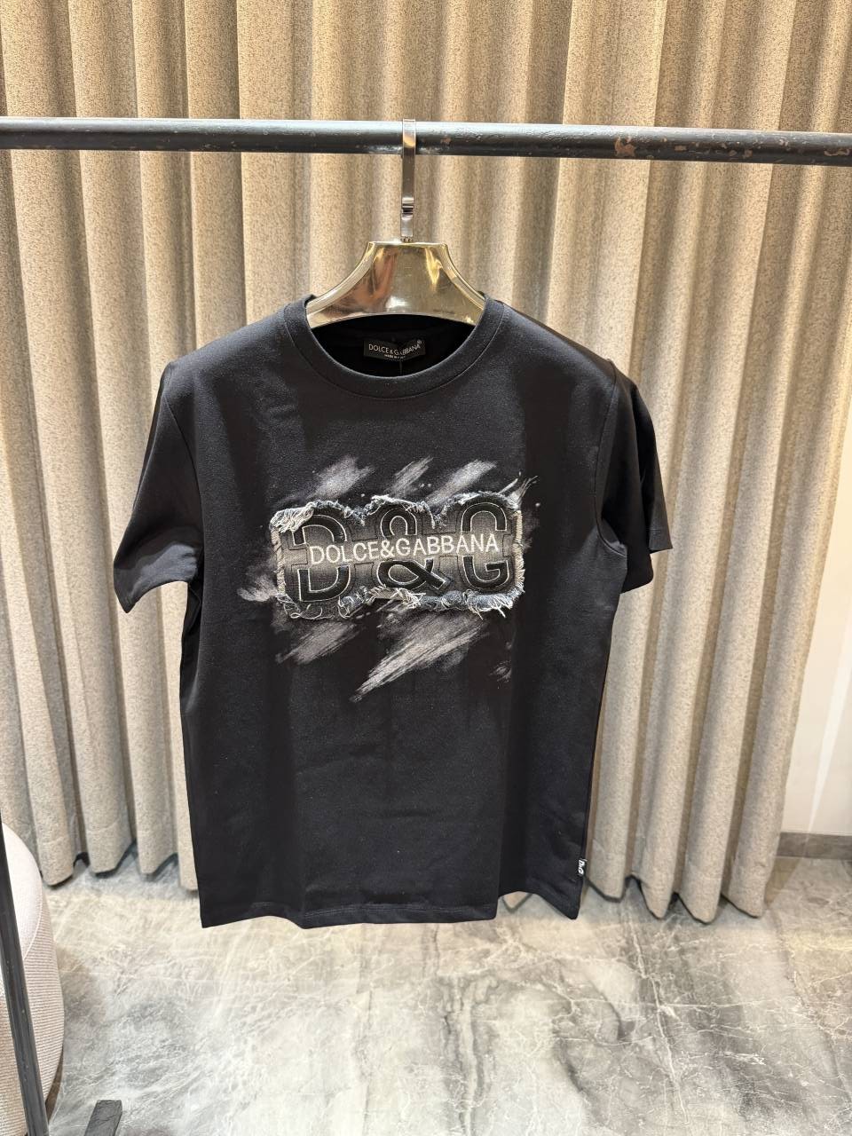 • Dolc e & Gabbana Black Denim Tear Print with Box Round neck Tshirt