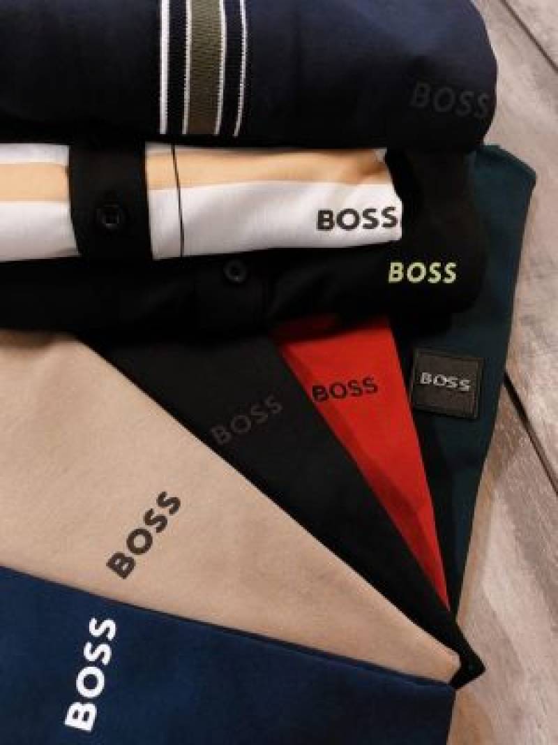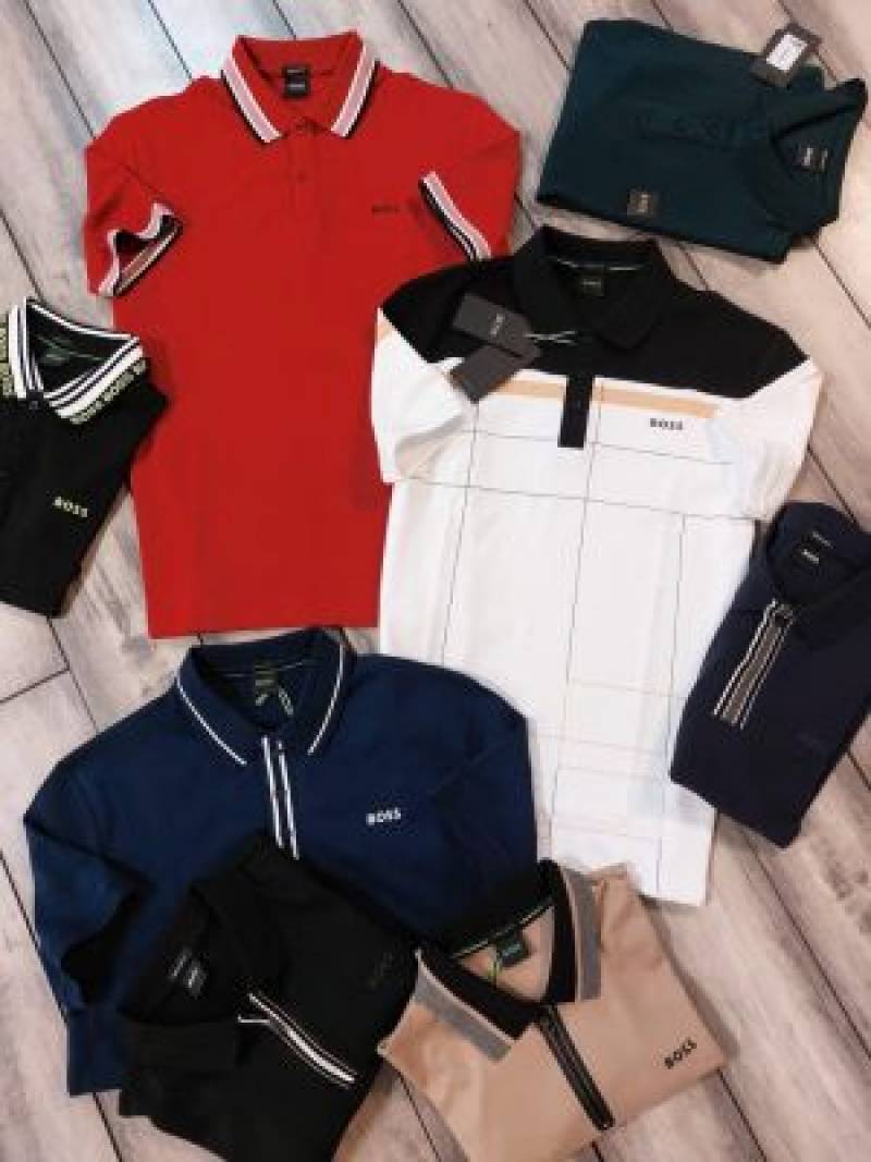 Hugo Bos s Red Premium 240 gsm interlock cotton fabric Polo Tshirt with Collar Design and Emboss Logo 3179