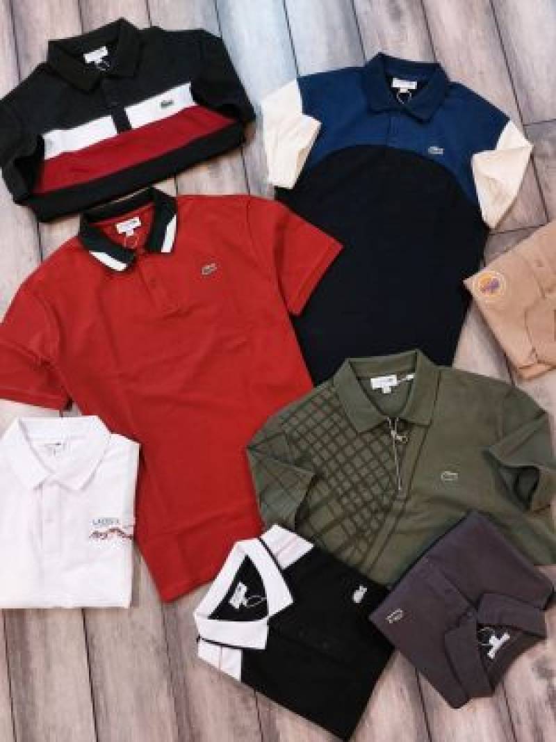 • Lacost e Black Premium Cotton Lycra Pique fabric Polo Tshirt with Embroidered Logo 3382
