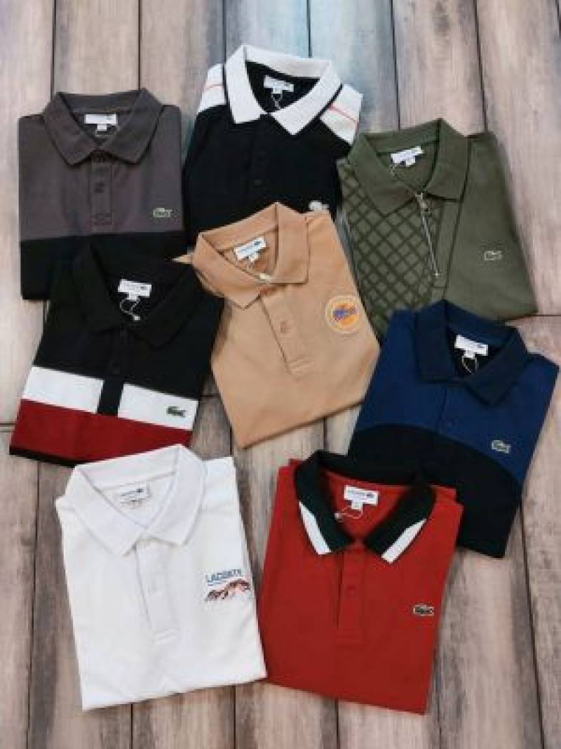 • Lacost e Grey Premium Cotton Pique fabric Polo Tshirt with Front Design and Embroidered Logo 3166