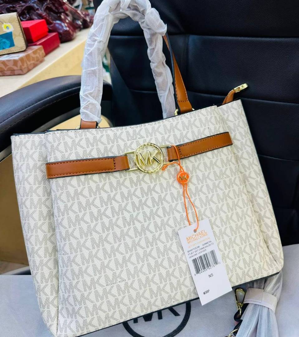 MICHAE.L KORS WHITE ANGELIA SATCHEL PREMIUM HAND BAG WITH DUST BAG