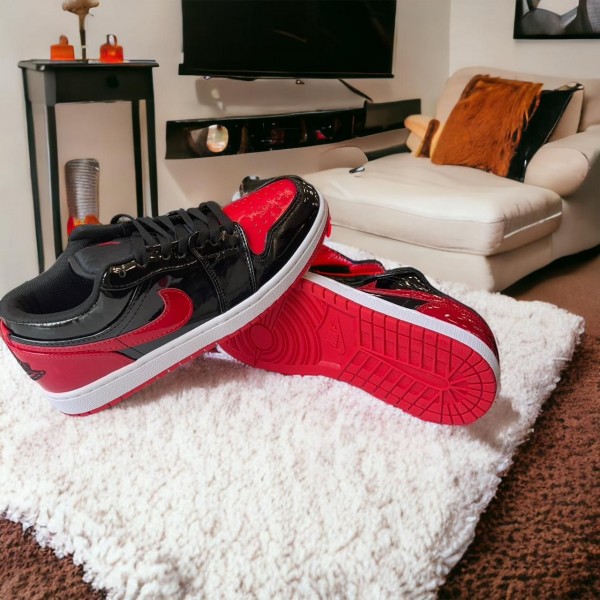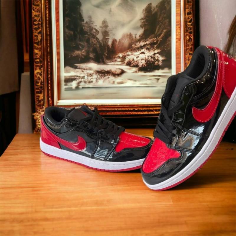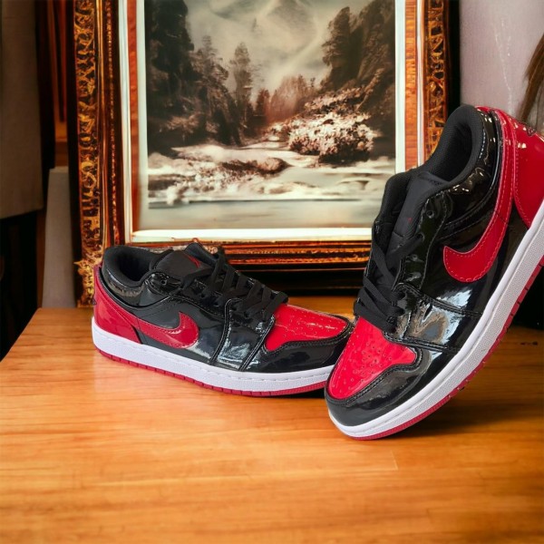 - Buy First Copy 7A Replica NK Air Jorda_n Retro 1 Low Patent Bred Black / Red Shoes Online