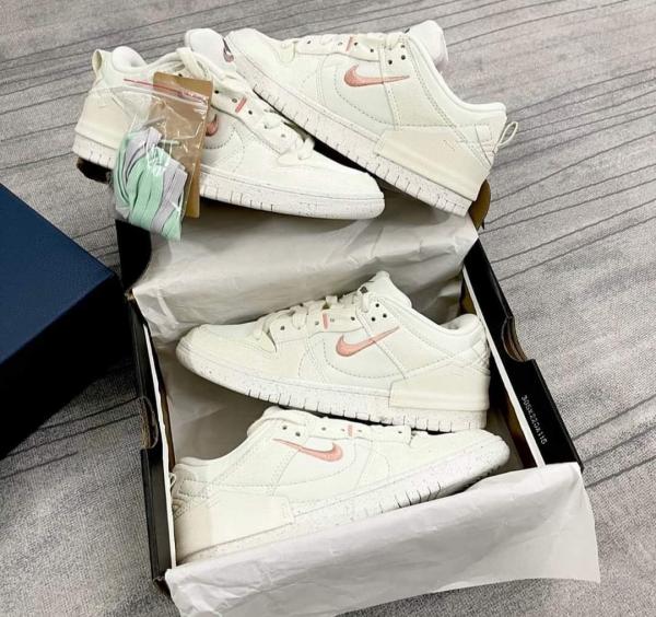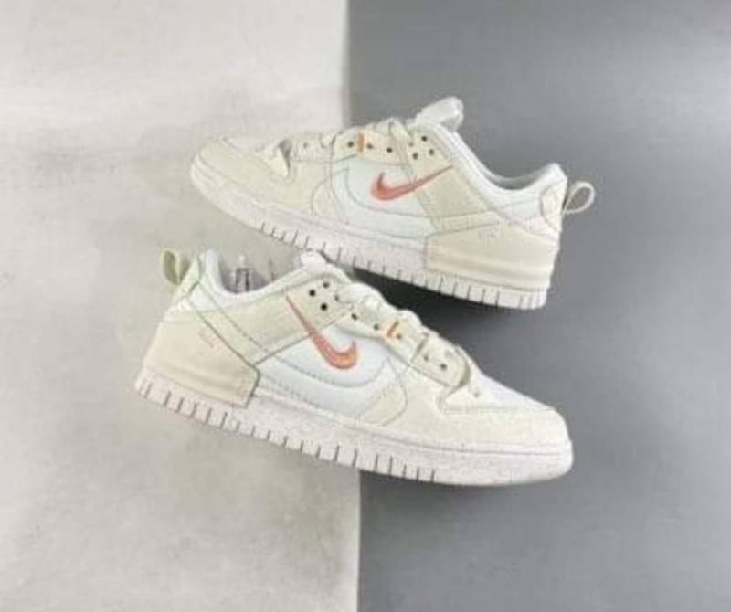 Step up your sneaker game with the NK Dunk Low Disrupt 2 – Cream White & Pink Swoosh Edition