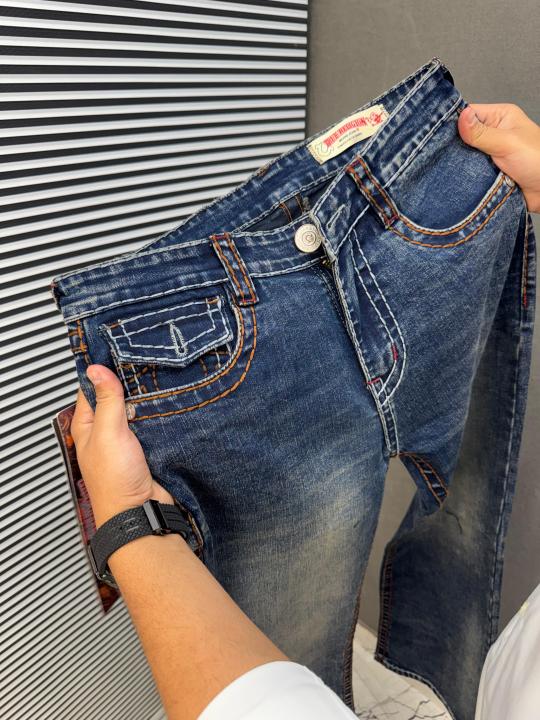 • True Religion Blue shade Straight fit Premium Imported Stretchable Lycra Fabric Denim with Back Pocket Embroidered Design 3952
